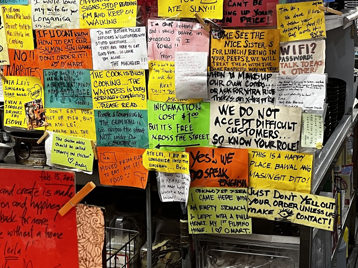 “ The fried bangas fish was a must get. Smoked, fried, deboned, and fully edible including the fish head (although that was the saltiest part). The longanisa, aka Filipino chorizos, are also a must: sweet, salty, and tender on the inside. The sinigang fish soup was a sour but hearty salmon soup. The pork lumpia egg rolls were also fried just right, although they could be more hot. We'd skip the chicken adobo which was a lukewarm drumstick. Service was especially kind and patient, despite what all the funny signs might indicate. The atmosphere was fun and inviting. ”